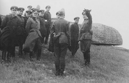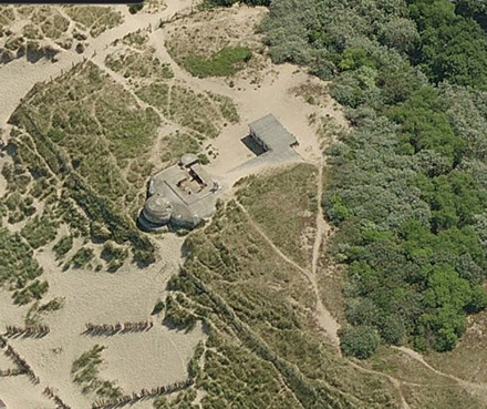 In 1941 the Germans began construction of a railway gun battery in Bredene, north of the port city of Ostend. The four 280 mm. guns were placed on a turntable so that they could fire 360°. A fire-control bunker was built in front of and centered on the four guns. Behind the guns were located a munitions bunker and several bunkers for the crews. The battery were directly linked by railway to the station in Ostend. During the war, the area was strongly built up by adding several new bunkers for close in defense and air defense.