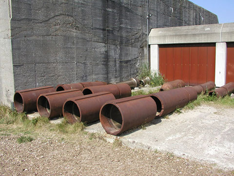 By the liberation both the large pillboxes were almost finished, while the four 110-tonne gun barrels were still lying in a railway station south of the battery, because they were two heavy for one of the bridges over the Varde river. Today there is a museum in the southern pillbox.