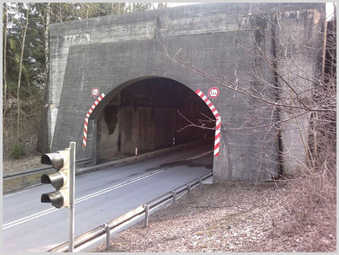 In an effort to ensure that production could continue, parts of the German war industry were moved to existing or new mines in southern Germany. The need for space was far greater than was available, so bomb-proof bunkers and road tunnels were also brought into use. In the village of Eschenlohe lay the Olympia tunnel. Built 8 years earlier in 1936, it formed part of Reichsstraße 2, connecting Munich with the Olympic Winter Games in Garmisch-Partenkirchen. The Olympia tunnel comprised two tunnels, each of which was extended at the sides and reinforced with concrete. The area between the two tunnels was designed to provide shelter and workshops. The plant produced parts for Messerschmitt Bf 109 and Me 262 fighters.