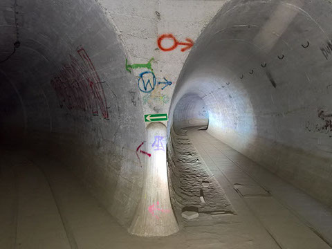 Flere af de store bunkersanlæg var forbundet via gange under jorden og nogle af gangene var store nok til at nyt mandskab og forsyninger, kunne bringes ind via jernbane.