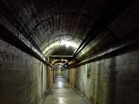 The hospital facility comprised 2 km of interlinked tunnels, with 3 entrance and 5 ventilation shafts. The shafts were equipped with ladders and also served as emergency exits. By the summer of 1944, there were a total of 7,000 m² of tunnels below ground which had required the casting of 15,000 tons of concrete. There was room for 800 patients and after the Allied landings in Normandy in June 1944, the hospital received many wounded German soldiers.