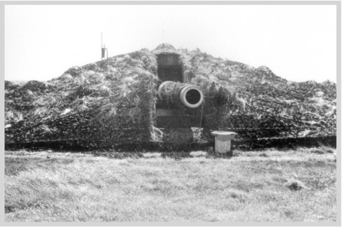 The last test firing was made the following August, whereupon the battery became operational. Besides four large pillboxes, a large number of other bunkers were constructed in Hantsholm for ammunition magazines, fire control, electrical power, local defense, sick quarters and of course flak (anti-aircraft) guns. The whole area around the gun battery was heavily defended with trenches, barbed wire and minefields.