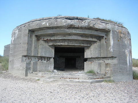 The gun batteries built by the German navy were generally close to the coast as the navy wanted to take a stand against enemy warships, while the batteries built by the German army were generally a little inland since the army had more experience with attacking enemy forces on land and their guns were not suitable for moving warships. Therefore today most of the naval gun batteries are on the beach.