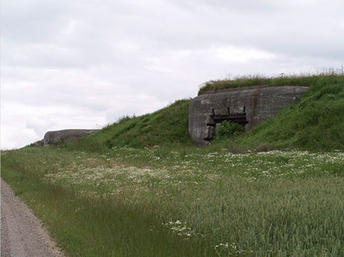 In early 1944, as part of their Atlantic Wall, the Germans began construction of a coastal battery to cover the western entrance of the Limfjord. They used captured Russian 122 mm. guns and each of the four was placed in a casemate (R669); in addition, three machine gun bunkers were adjacent for point defense. The casemates were designed to enable the gun to be withdrawn from the rear, thereby permitting a 360-degree field of fire. Crew facilities and the battery command post were installed in light bunkers, built of concrete blocks. The entire coastal battery was protected by barbed wire and minefields.
