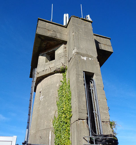 Hinter den Waffen war ein Beobachtungsbunker gebaut, aus dem das Feuer von den vier Kanonen geführt werden sollte.