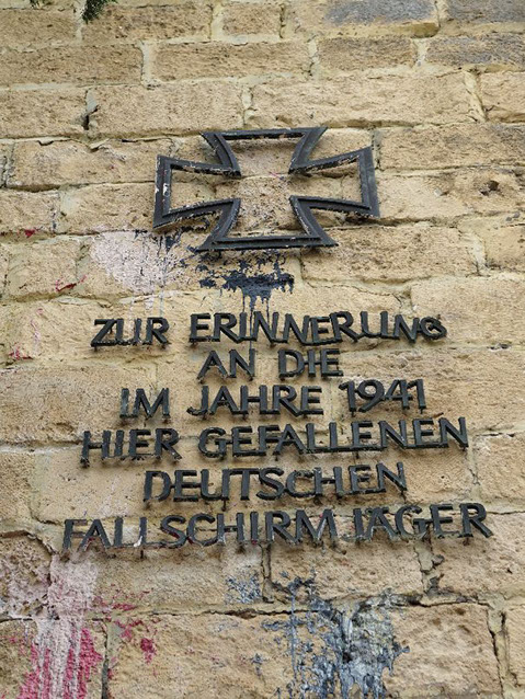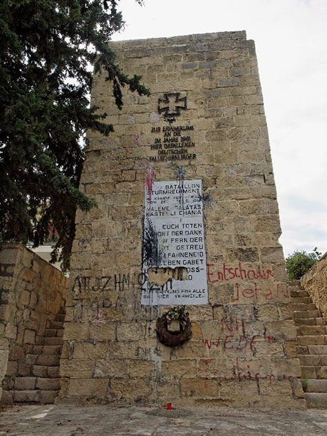 Efter de tyske faldskærmstropper under svære tab i maj 1941 havde erobret Kreta, blev der ved hovedbyen Chania opført et mindesmærke til at mindes de anslået 6500 faldne tyskere.