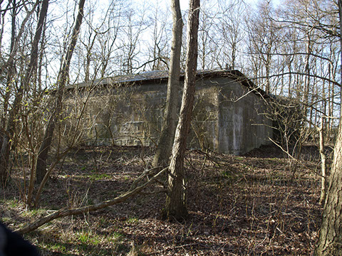 At the end of 1943 bunkers (L409A and L410A) were built to reinforce the previously fielded guns. Due to the low terrain and in an effort to achieve a better field of fire, the bunkers were built above ground. In order to camouflage the positions, a small forest of artificial trees was set up. This forest consisted of pine posts that had paper and fabric attached to them, set in at heights that allowed the guns to fire over their tops.