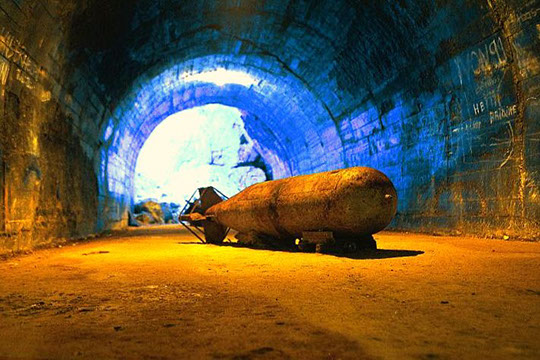 I begyndelsen af 1943 begyndte slavearbejdere udgravningen til tyskernes gengældelsesvåben 3 (V-3) ved byen Mimoyecques i Nordfrankrig. V-3 var et 130 meter lang kanonrør, hvor en 150 mm. granat blev sendt igennem. En række ekstra ladninger øgede mundingshastigheden til 1550 m/sek og derved rækkevidden til 165 km. Det var planen, at der skulle placeres 25 af disse kanoner i anlægget i Mimoyecques, 165 km. fra London.