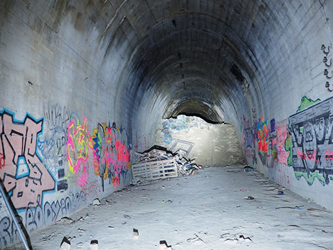 Es wurden zwei parallele Eingänge gebaut: einer für die Eisenbahn und einer für Lastwagen. Beide Eingänge waren in Beton gegossen und konnten bei möglichen Bombenangriffen hermetisch verschlossen werden; zusätzlich gab es Schießscharten für die Nahverteidigung.