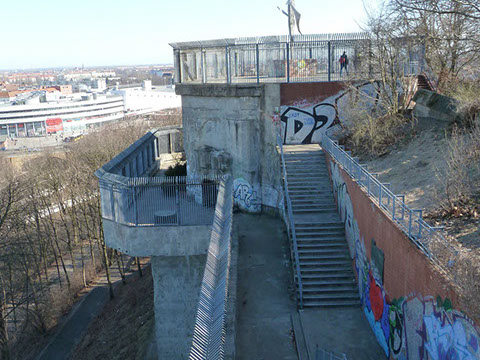 “ Im Frühjahr 1945 lernte ich als 14-Jähriger den Zoo-Bunker kennen. An einem Vormittag war ich gerade in dieser Gegend als es Flieger-Alarm gab. Ich staunte über die dicken Wände von ca 4 m. Viele suchten Schutz in dem Bunker. Ich ging hinein und man verteilte sich über mehrere Stockwerke. Neugierig, wie ich war, stieg ich bis zum 4. Stock hinauf und staunte über das Vorhandensein eines Militärlazaretts ! Hoch oben im 4. Stock !