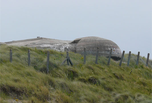 In 1941 the Germans began construction of a railway gun battery in Bredene, north of the port city of Ostend. The four 280 mm. guns were placed on a turntable so that they could fire 360°. A fire-control bunker was built in front of and centered on the four guns. Behind the guns were located a munitions bunker and several bunkers for the crews. The battery were directly linked by railway to the station in Ostend. During the war, the area was strongly built up by adding several new bunkers for close in defense and air defense.