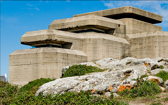 En 1943, on décida de remplacer les vieux 240 mm. par des 305, et de commencer la construction de bunkers, dont le plus grand abriterait un poste de direction de tir. Son emplacement fut choisi au raz de la côte, au sommet d'une falaise dominant de 20 m. le niveau de la mer. Pour le camoufler, on le couvrit d'une fausse toiture et il fut peint de manière à avoir quelque ressemblance avec un hôtel de plage.