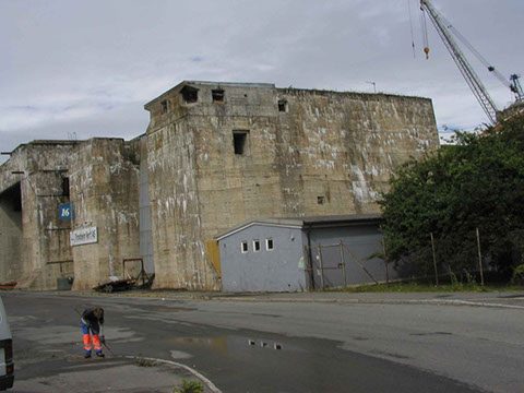 The Germans built two U-boat bunkers, Dora I and Dora II, but only Dora I had been completed by the end of the war. Construction of Dora I started in 1941, and when it was finished 2 years later, it measured 502 x 344 feet, and the 5 pens had space for 16 U-boats. The walls were 10 feet thick and the roof comprised 9.8 feet of reinforced concrete.