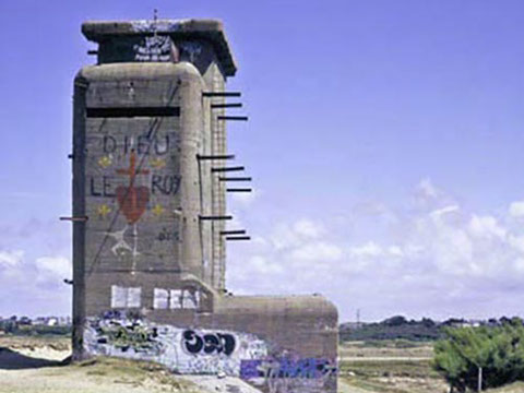 In addition to the three guns, Battery Plouharnel included bunkers for munitions, crew, air defense, close combat and a 14-meter high fire command bunker.
