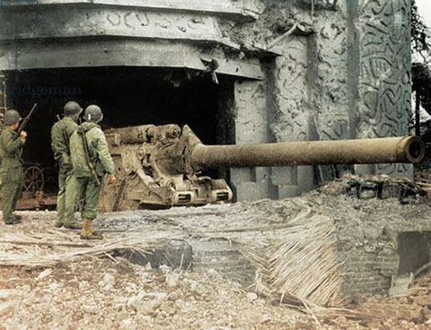 Der Bau der Marine-Küsten-Batterie St. Marcouf begann im Jahre 1941. Die Batterie wurde mit sechs 155 mm. Kanonen ausgestattet welche im Juni 1944 durch stärkere und modernere 210 mm. Kanonen ersetzt wurden. Drei der Kanonen waren zur Zeit des D-Day installiert allerdings nur zwei in Bunkern des Typs R683. Regelmäßig wurde die Batterie von den Alliierten seit April 1944, in Vorbereitung auf die Landung am Utah Beach in 11 Kilometer Entfernung, bombardiert. Am Tag vor dem D-Day wurden 600 Tonnen Bomben auf die Batterie abgeworfen. Diese Angriffe löschten die Luftabwehrkanonen in dieser Gegend aus und töteten eine große Anzahl von Soldaten. Am Morgen des 6. Juni, als die ersten amerikanischen Landungsboote sichtbar wurden, eröffnete die Batterie das Feuer und versenkte den amerikanischen Zerstörer USS Corry (DD-463). Schweres Feuer von den amerikanischen Kriegsschiffen schalteten eine nach der anderen Kanone der Batterie aus, sodass am 7. Juni die gelandeten Amerikaner die Batterie angreifen konnten. Der Batteriekommandant, Oberleutnant zur See Walter Ohms bat die nahegelegene Batterie Azeville um Unterstützung. Das unterstützende Feuer wehrte die Angriffe zunächst ab. In den folgenden Tagen gab es eine Attacke nach der anderen die unter schweren Verlusten der Amerikaner zurückgeschlagen wurde. Am 11. Juni gab der Kommandant der Amerikaner seinen Männern den Befehl sich nach Norden zurückzuziehen und die Einnahme der Batterie wurde damit aufgegeben. Ohms hielt die deutsche Linie mit 78 Mann und erhielt in Folge dessen am 13. Juni 1944 das Eiserne Kreuz. Die Batterie ist heute ein Museum.
