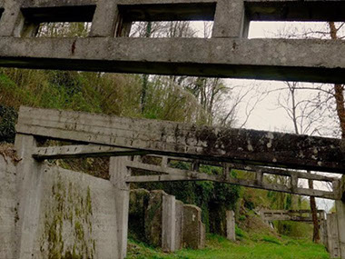 The remains of the old covered loading ramps are today preserved as a war memorial Bronsdaelgroeve.