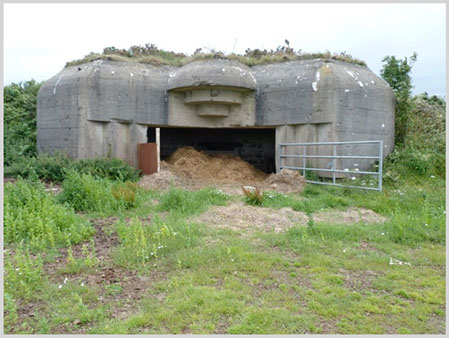The new main armament for Gneisenau comprised 380 mm. guns twin mounted in turrets, and two of these turrets were already complete. In autumn 1943, it was decided that these two turrets should be installed at Castel Verdon and at the same time, the name was changed to Gun Battery Landemer. The almost-complete French gun pits did not match the German gun turrets and so casting of new mountings was begun. This new work was to the east of the French gun wells, but already by the turn of the year, the plan had changed and construction stopped. The 380 mm. was sent to Denmark to be main armament in Gun Battery Vogelnest. Instead, the Germans began construction of bunkers (M272) for 4 x 150 mm. guns. These guns were manufactured by Skoda and had a range of 23 km. The name was retained, but the location was moved in front of the French gun pits.