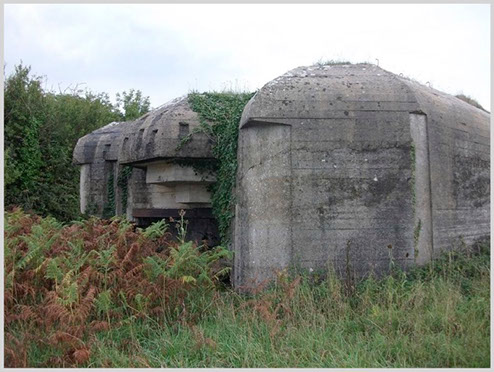This battery was built by the German Army in 1943, near the village of Mont Conquerel. The guns were captured French 105 mm. guns, with a range of 12 kilometers. Each of the guns was mounted in a R671 bunker. The bunkers were camouflaged as houses in order to hide them from the Allies, but the battery’s location was known.