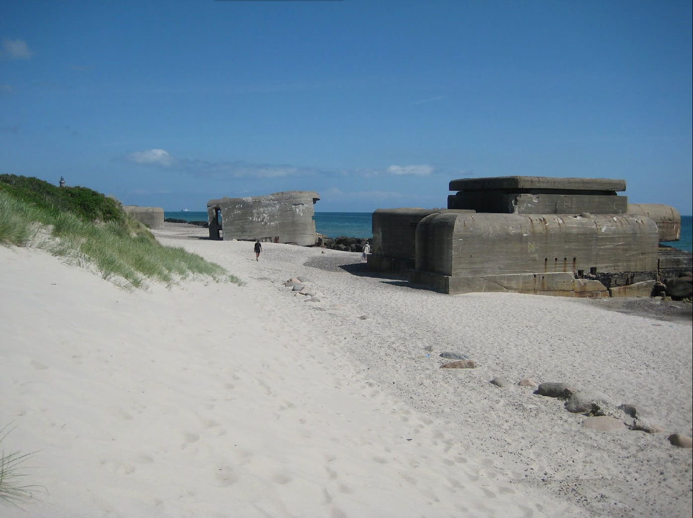 The gun batteries built by the German navy were generally close to the coast as the navy wanted to take a stand against enemy warships, while the batteries built by the German army were generally a little inland since the army had more experience with attacking enemy forces on land and their guns were not suitable for moving warships. Therefore today most of the naval gun batteries are on the beach.